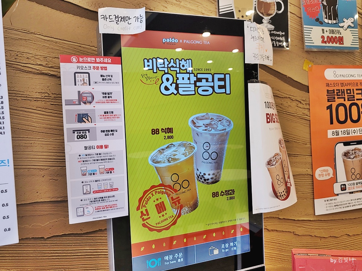 팔공티에선 직접 주문을 하거나 아니면 매장에서 키오스크로 간단하게 주문해도 됩니다