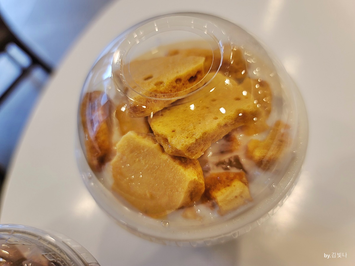 팔공티 메뉴 추천받았더니 달고나가 들어간 것을 친구가 추천해주더라고요