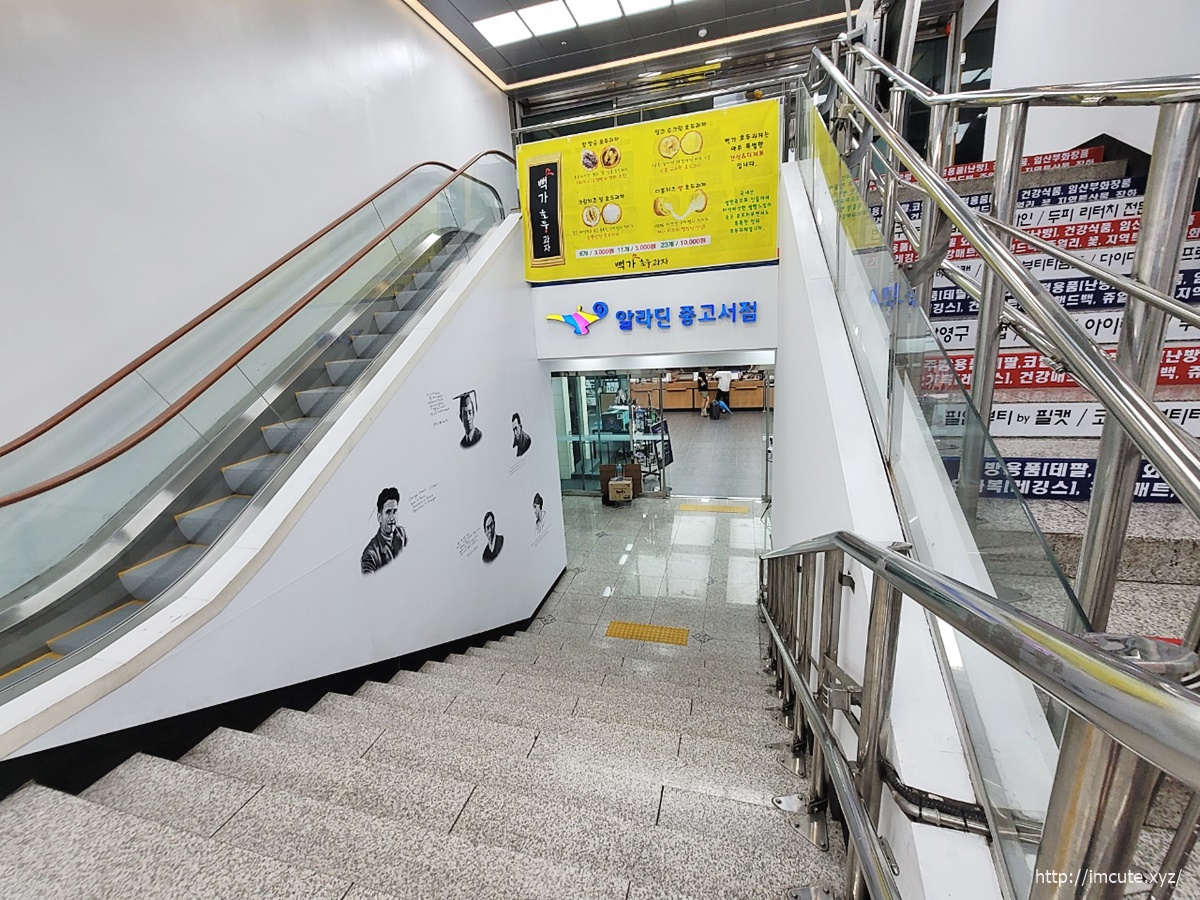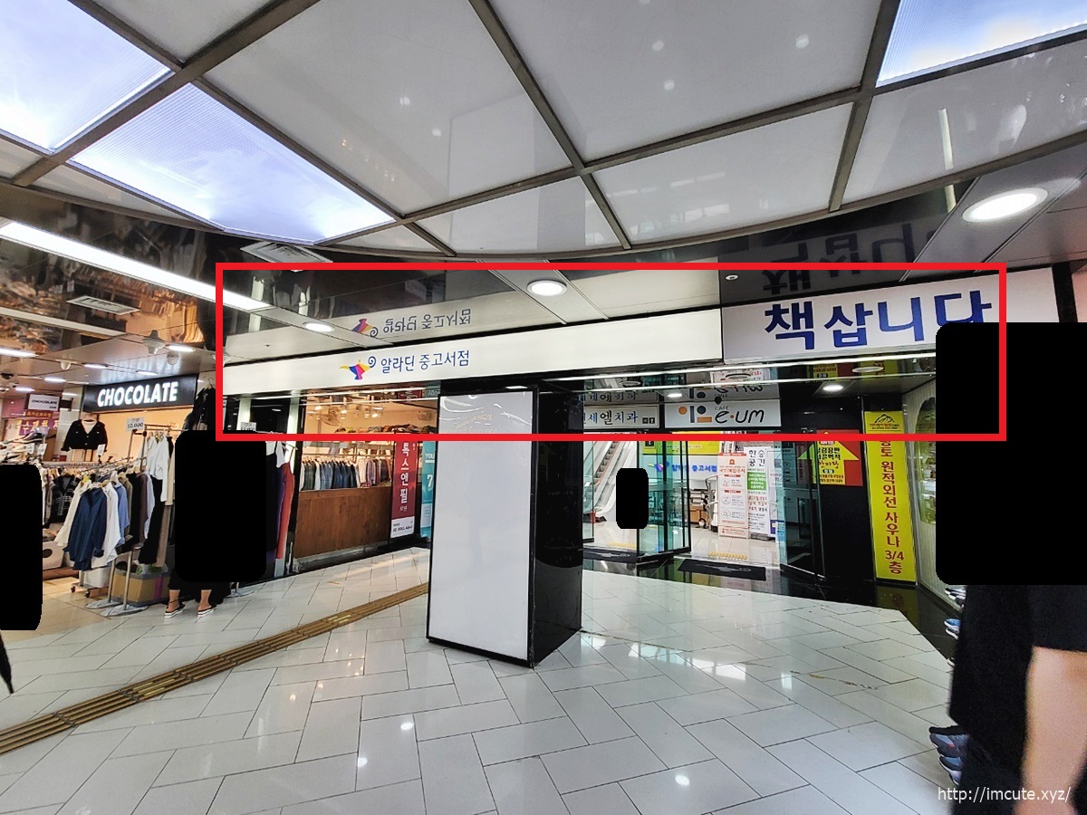 알라딘 중고서점은 입구를 찾기 참 쉬워요. 영등포역 지하철역으로 들어가면 있습니다.