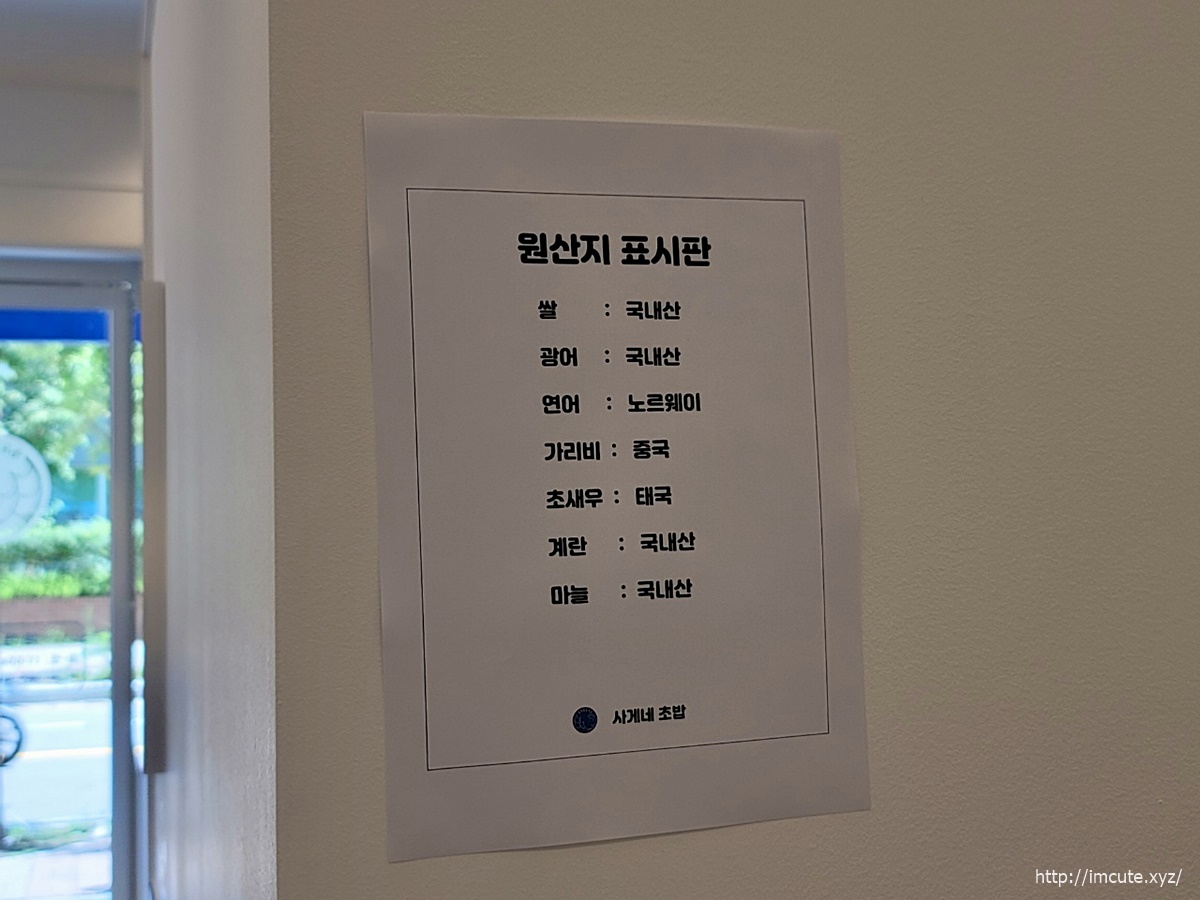 원산지 표지판이 다 있더라고요. 쌀은 국내산을 쓰고 광어도 우리 신토불이 광어네요.