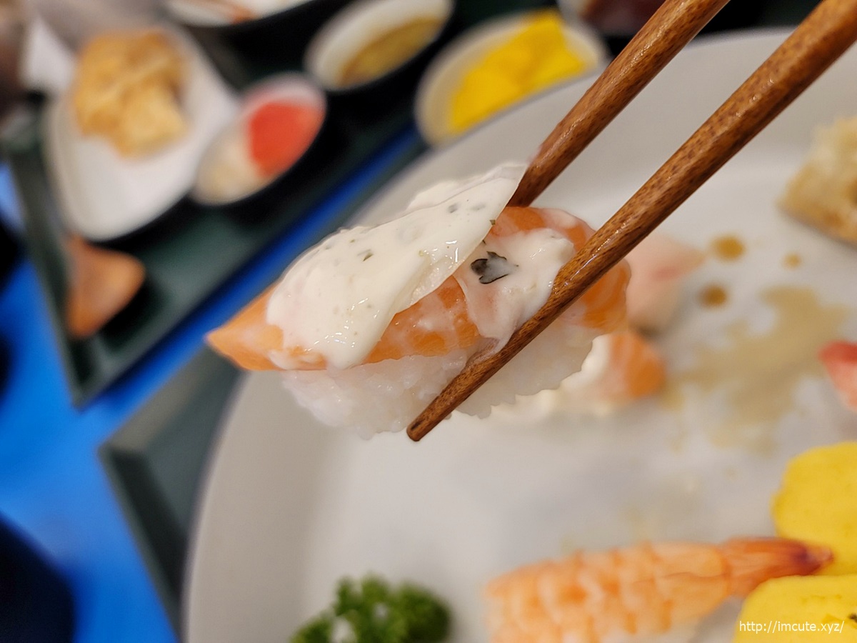 가까이서 봐도 참 먹음직스럽고요 특히 연어가 넘나 맛있더라고요.