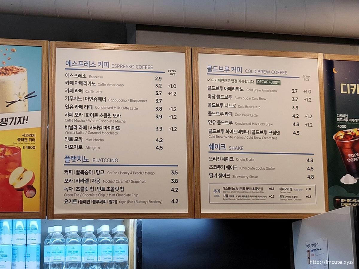 이디야 메뉴판입니다...