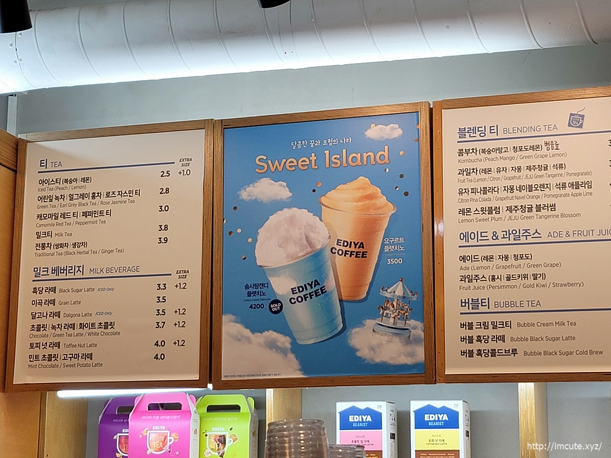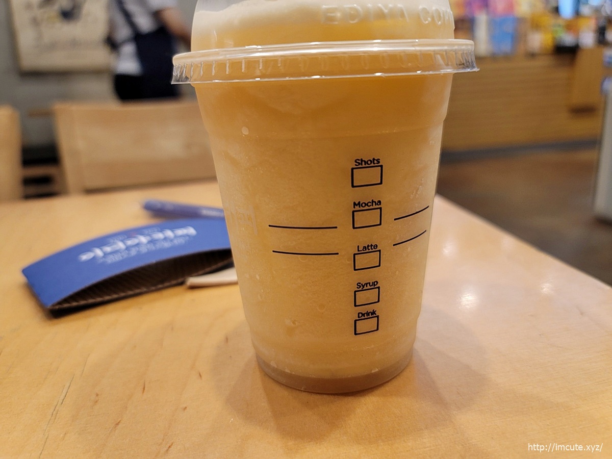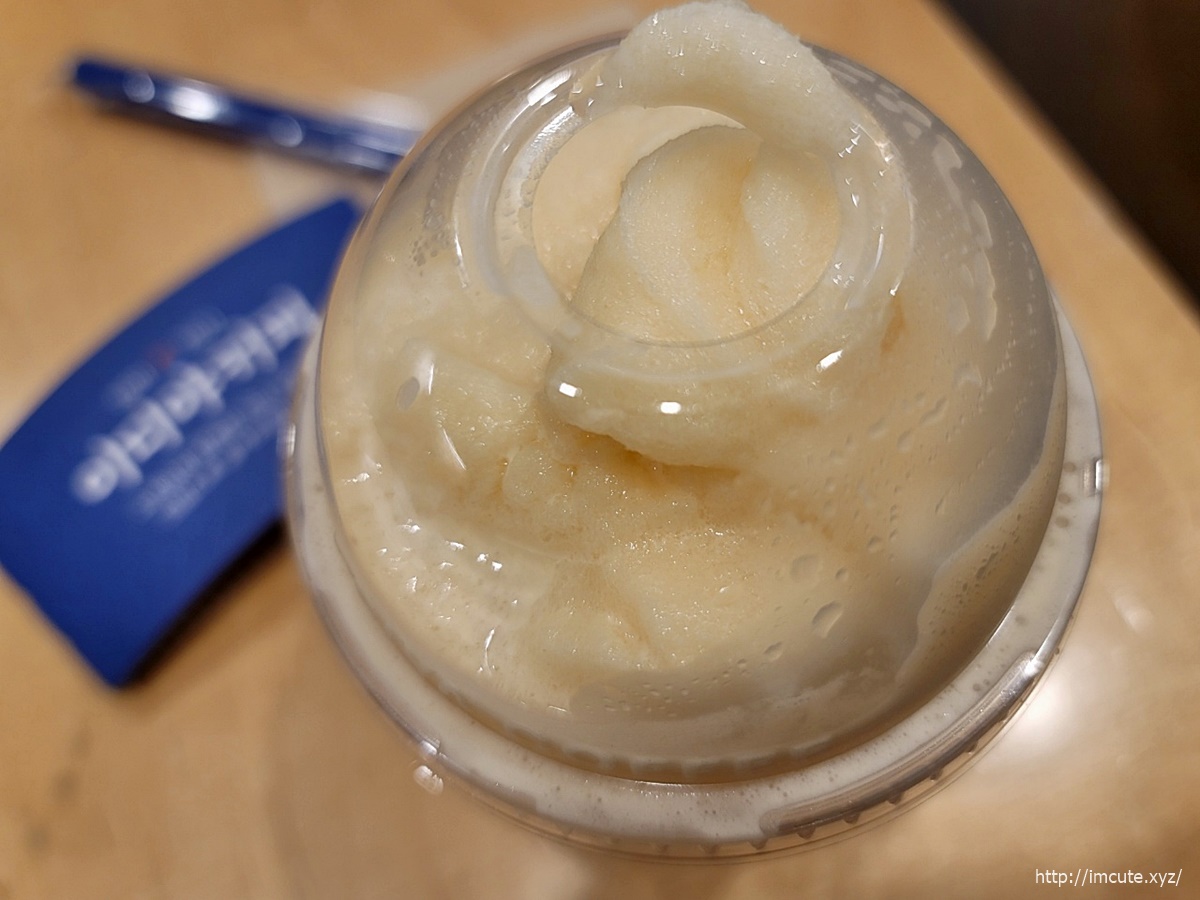 이미 아침에 일어나자마자 커피를 마셨기에, 일반적인 커피류는 먹으면 잠이 안오니까, 논커피 메뉴중에서 선택하는데요 오오...역시 달달한것이 배가 허할때 먹으면 좋겠더라고요. 입이 심심했는데 싹 들어갔어요~