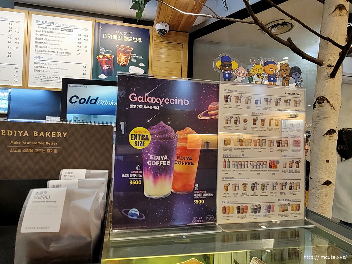 이디야 갤럭시치노도 엄청나네요.. 오로라 갤럭시치노와 샤인파인 갤럭시치노는 각각 3500원이네요~ 가격도 나쁘지않고 신박하게 생겼네요.우주를 줄게...