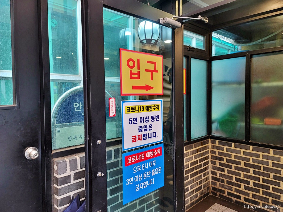 코로나19 예방수칙을 지키며 입구로 입장해줍니다. 동반 5인이상 금지라고 써 있는데 아마 나중에 백신을 다 맞고 나면 달라지겠죠~~