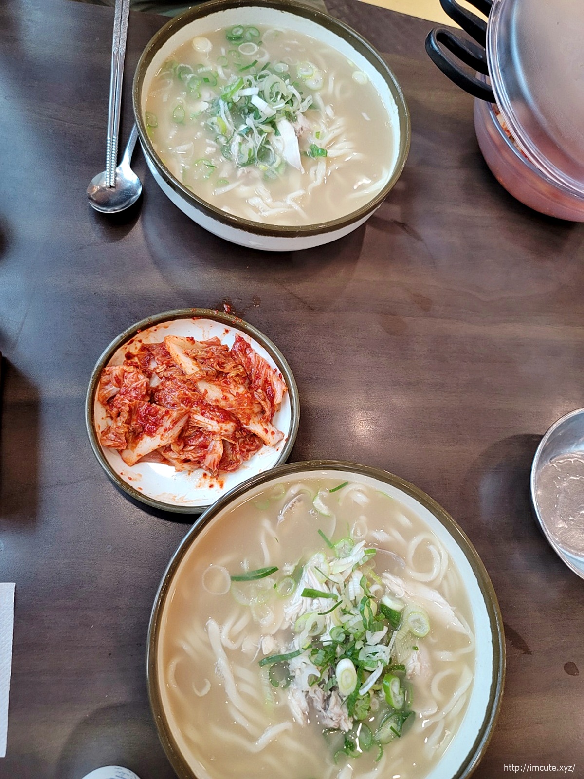 단촐하게 놓여진 식탁. 요즘에 코로나19니까 이왕이면 일회용 종이컵도 좋겠네요. 그리고 다대기랑 후추같은것도 있으니 기호에 맞게 넣어드시길.