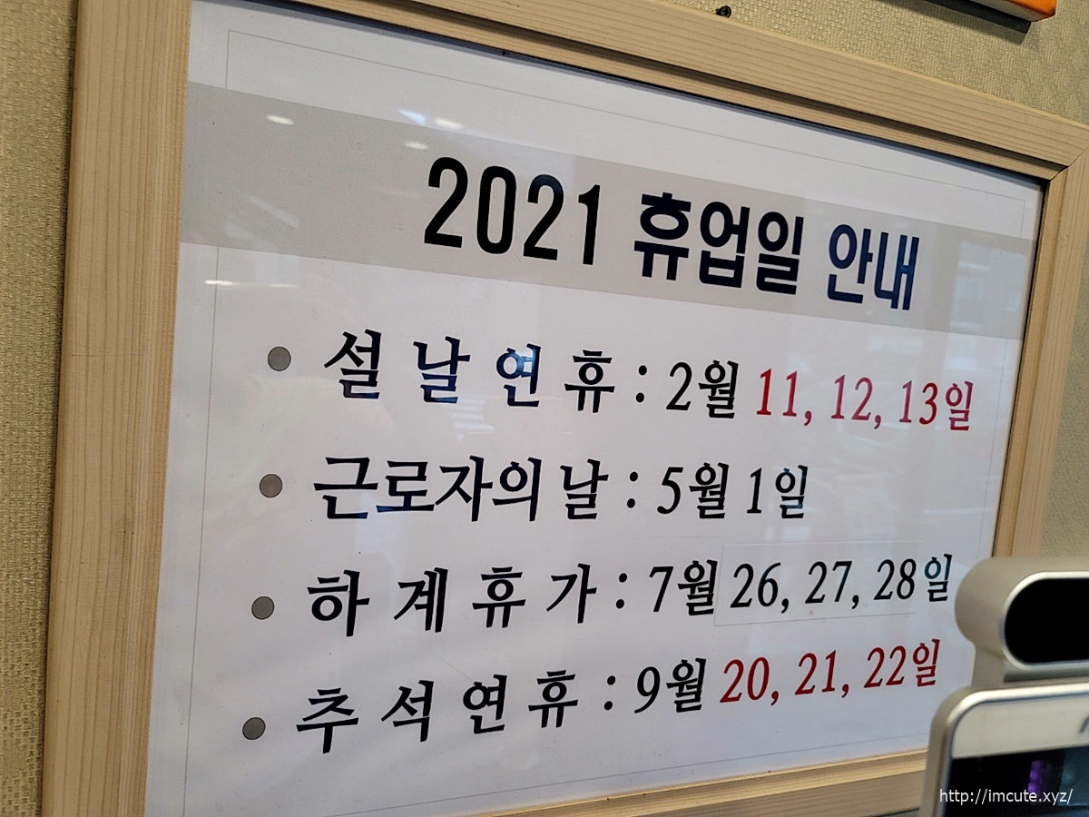 2021년 휴업일을 참조하시어 일산칼국수 본점에 방문해보세요. 곧 추석인데 추석연휴에는 일산칼국수 본점에 기껏 와도 사람이 없을 수 있으니 이렇게 날짜를 참고하고 와야겠죠. 저의 경우는 징크스가 있어서 가는 날이 장날인데 이날엔 여기까지 방문해도 먹을수가 있어서 다행이네요.