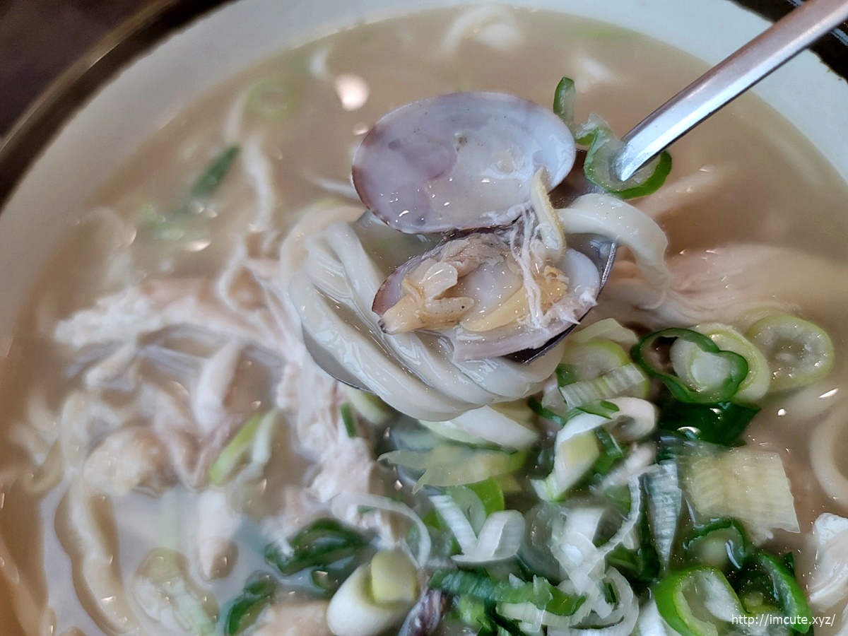 중간중간 바지락이 들어있어서 국물에 더 깊은 감칠맛이 들어있는 것 같아요. 여기에 파까지 송송 썰어져 있는데 이 모든 조합은 그냥 완벽오브 완벽이더라고요.