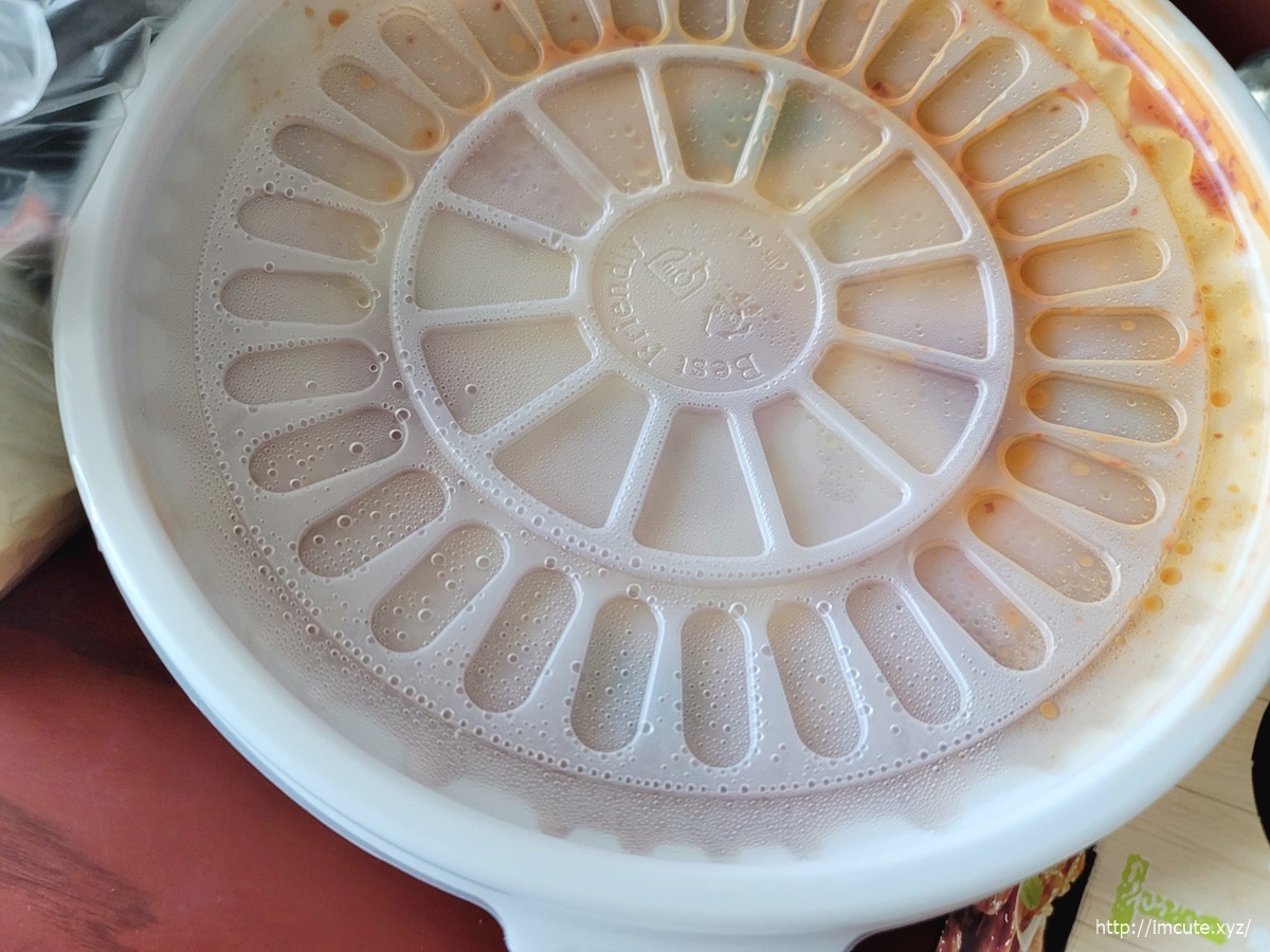 포장용기는 엽떡의 그것(?)이 생각나는 그런 통에 담아줍니다. 약간 엽기떡볶이같은 느낌이 나죠? 하지만 유자유 김치떡볶이랍니다.. 배달료가 붙으면 유자유 김치떡볶이의 가격에 메리트가 좀 사라지니 직접 전화주문으로 포장해 오시는것도 더 맛나게 즐길 수 있는 하나의 방법이 될 듯 합니다. 저는 그렇게 하거든요.