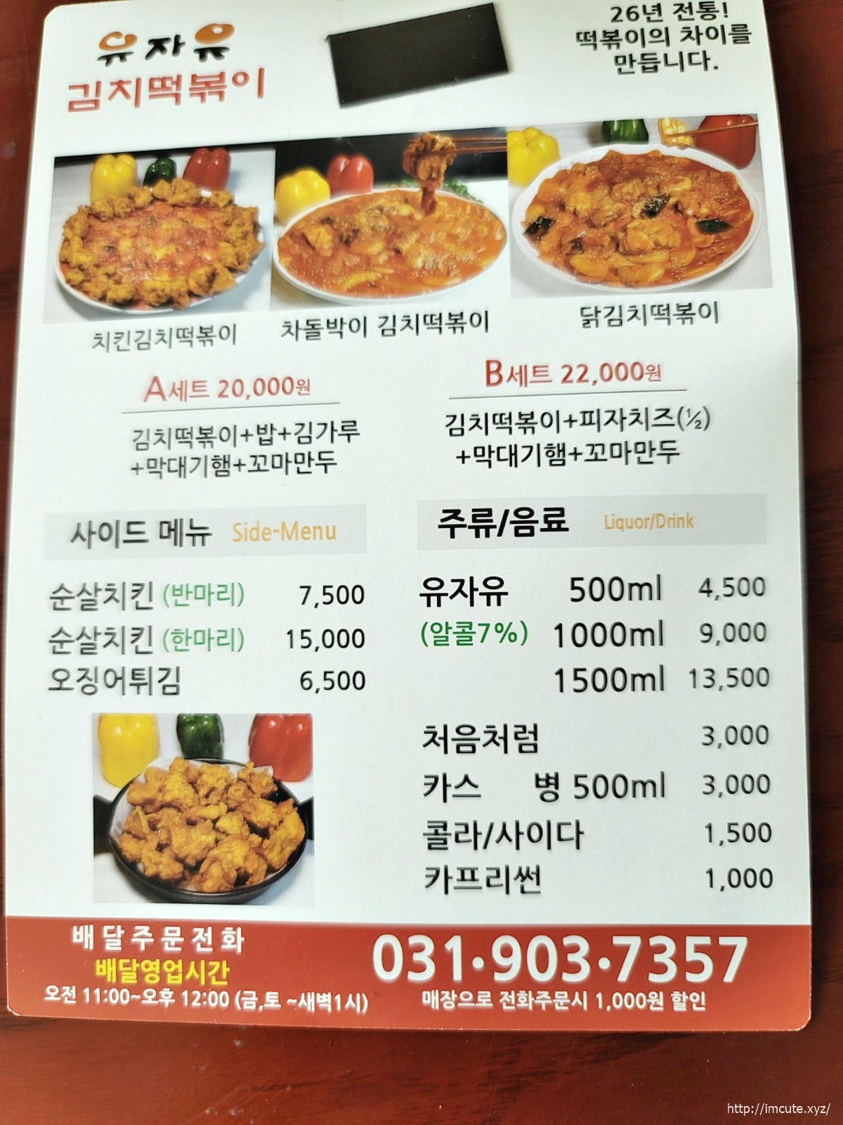 26년 전통 유자유 김치떡볶이 메뉴와 가격입니다.