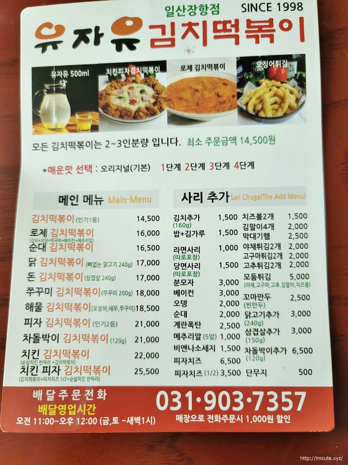 저는 일산 정발산 장항동 유자유 김치떡볶이 메뉴를 기준으로 소개해드리겠습니다(지점마다 차이가 있을수 있어요)