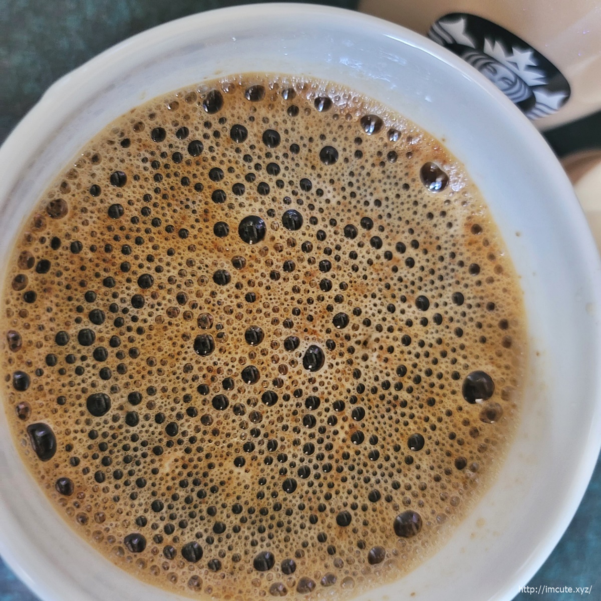이렇게 먹다보면 거품이 잦아드는데요 안에 가라앉은 것은 찌꺼기가 아니라 먹어도 되는 물질인거 같습니다. 효소 커피이지만 정말 구수하고 맛있고 다른 효소들은 발효냄새가 나던데 이건 그러한 점이 없어서 먹기에도 편하네요...