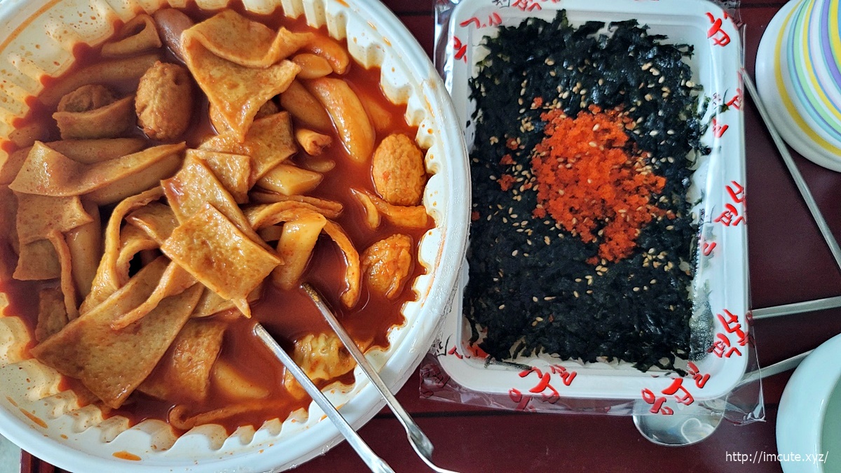 제가 시킨 떡볶이는 떡이랑 건더기 그리고 여러가지 고명(?)들이 들어있었습니다.