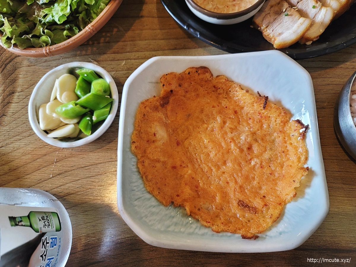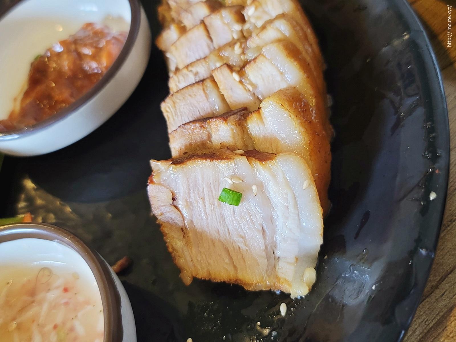 고기맛이 어떻나 해서 새우젓이랑 쌈장만 올려서도 먹어봤는데 아주 굿입니다. 보쌈김치 없이도 이렇게 고기가 맛이 좋다니요.