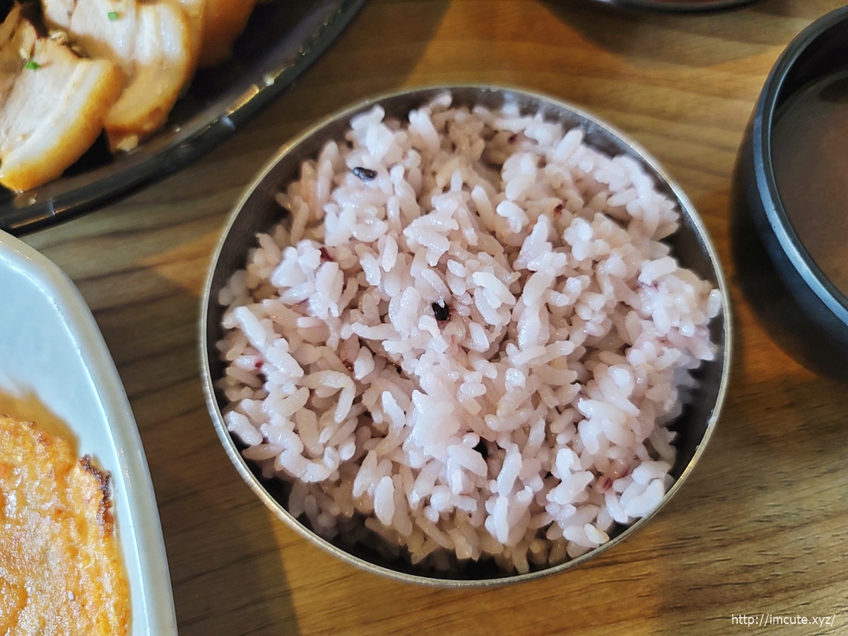게다가 쌀밥보다 더 비싼 잡곡밥이네요. 흑미가 중간에 콕콕 있어요.