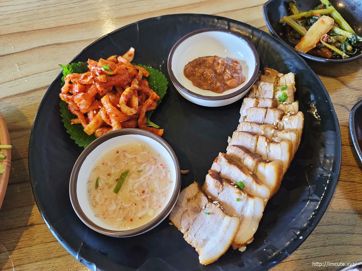 야들야들 겉촉속촉입니다. 거기에 새우젓, 무말랭이 보쌈김치, 쌈장이 나오는데요. 일반 쌈장이 아니라 여기서 만든듯한 그런 맛!!