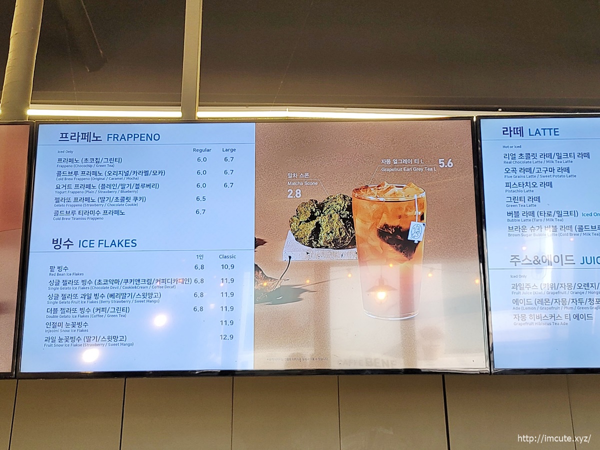말차 스콘은 2800원, 자몽 얼그레이 티는 L 5600원입니다.
