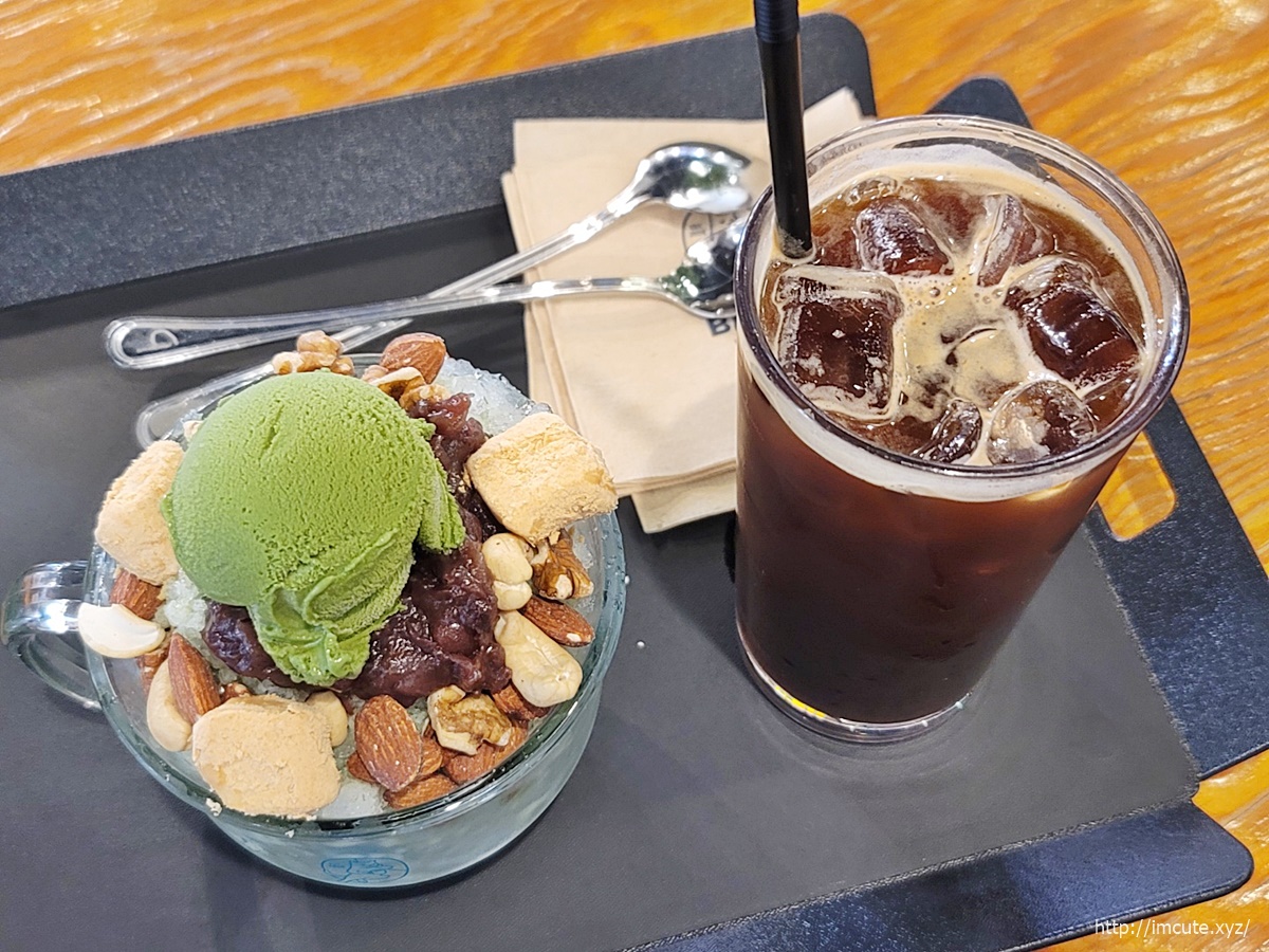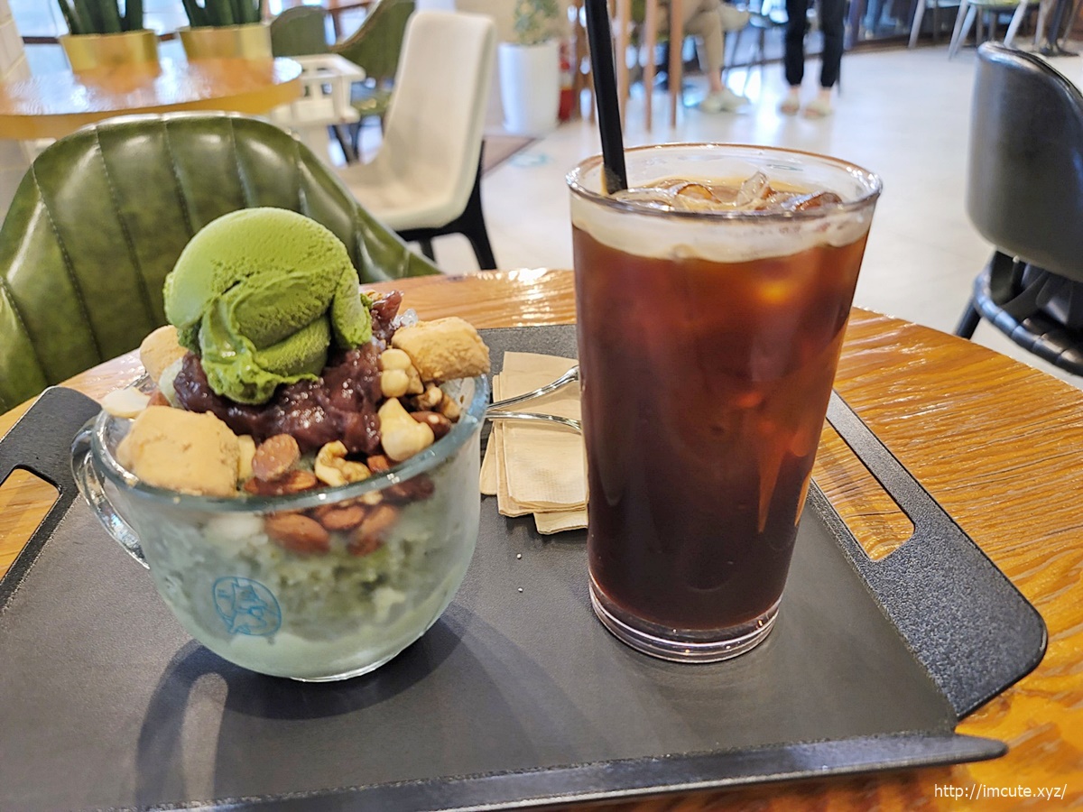 저는 그린티 빙수 1인에 아메리카노 라지사이즈로 시켜보았습니다.