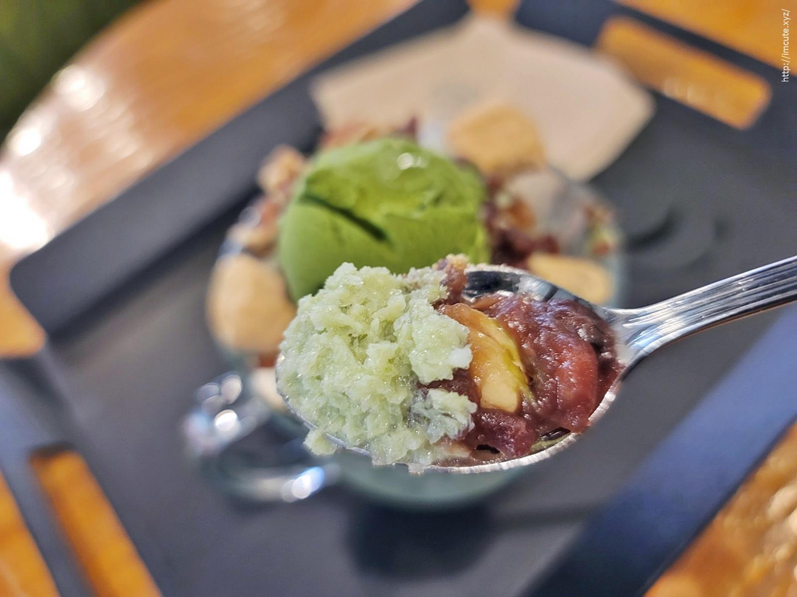 이렇게 한 스푼 떠 봅니다. 견과류&얼음 그리고 팥의 조합...!!