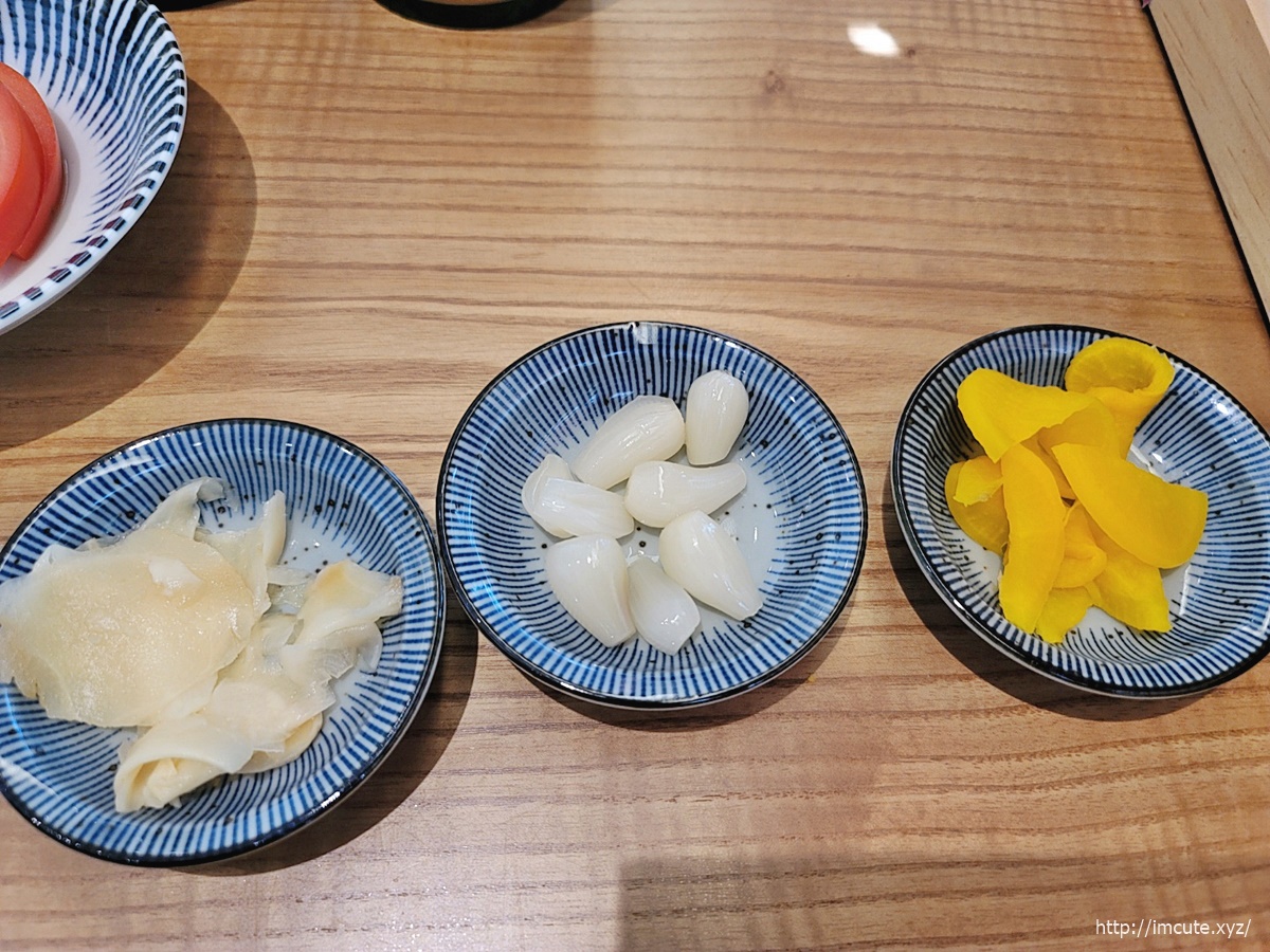 요거 두 개는 스시 구성에 포함된 밑반찬인가 보더군요.
