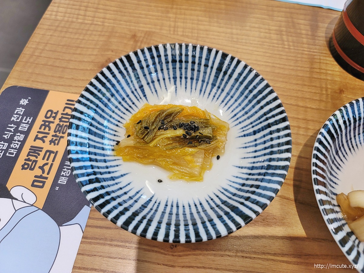 위에 묵은지가 올라간 독특한 아이~ 묵은지만 있는것이 아니라 밑에 생선이 있어서 회&묵은지 같이 먹는 즐거움도 냠냠