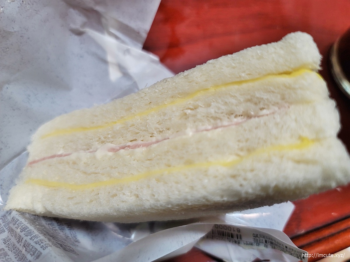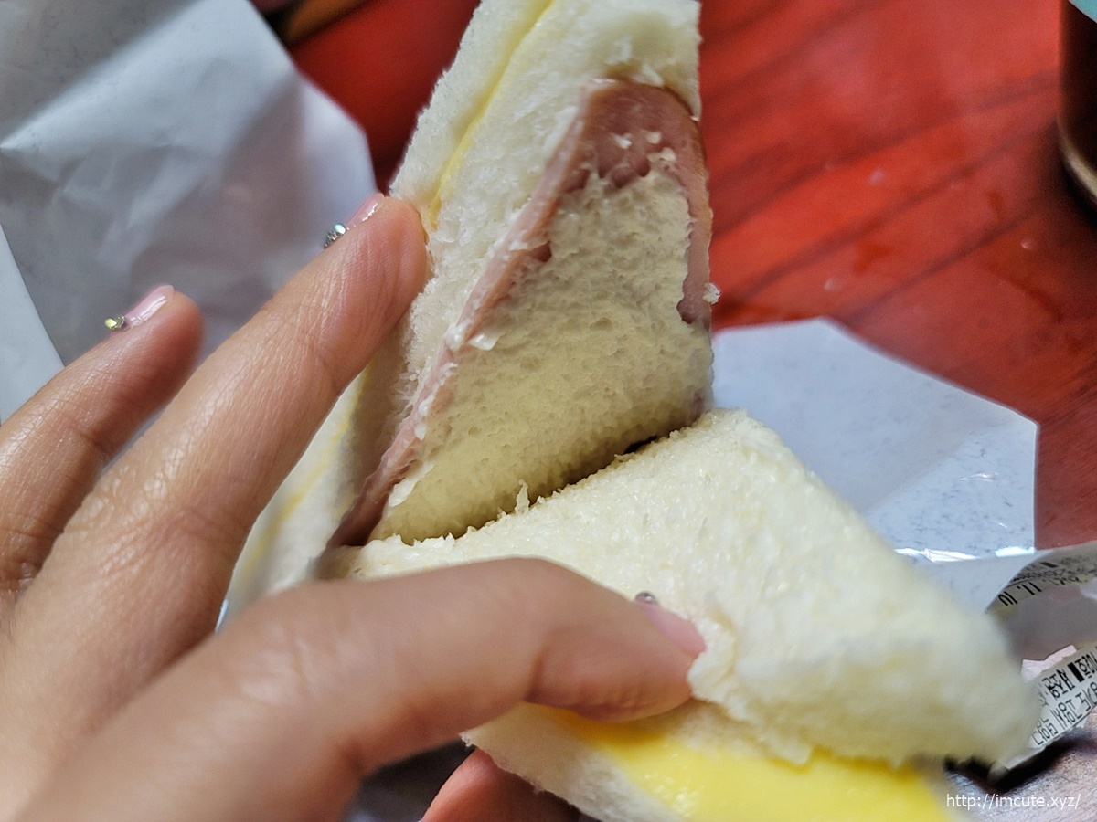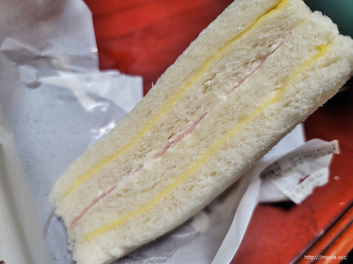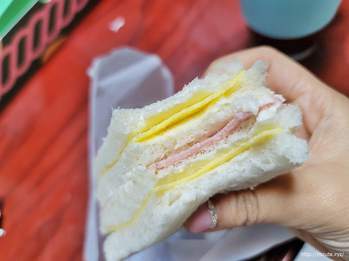 혼자서 2개 정도는 거뜬히 해치울 거 같습니다. 빵이 3겹인데 테두리가 잘라져 있어서 별로 칼로리도 안 높을 거 같아요...