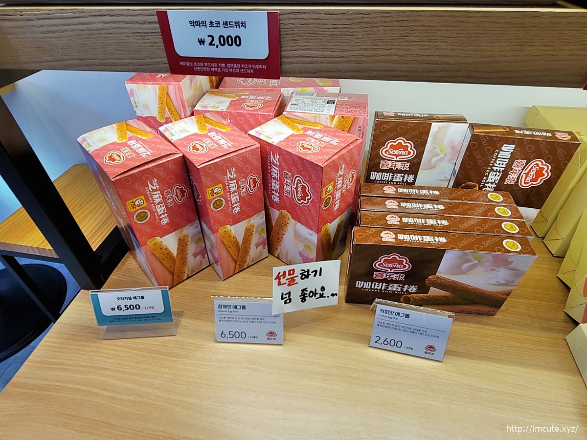그 외에도 오리지널 에그롤이 6500원, 참깨맛 에그롤 6500원, 커피맛 에그롤이 2600원이었습니다.