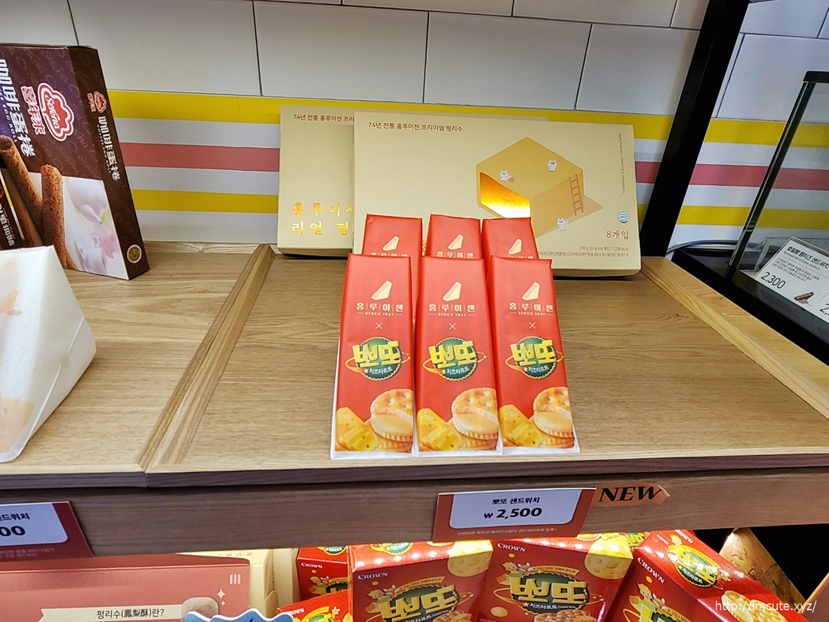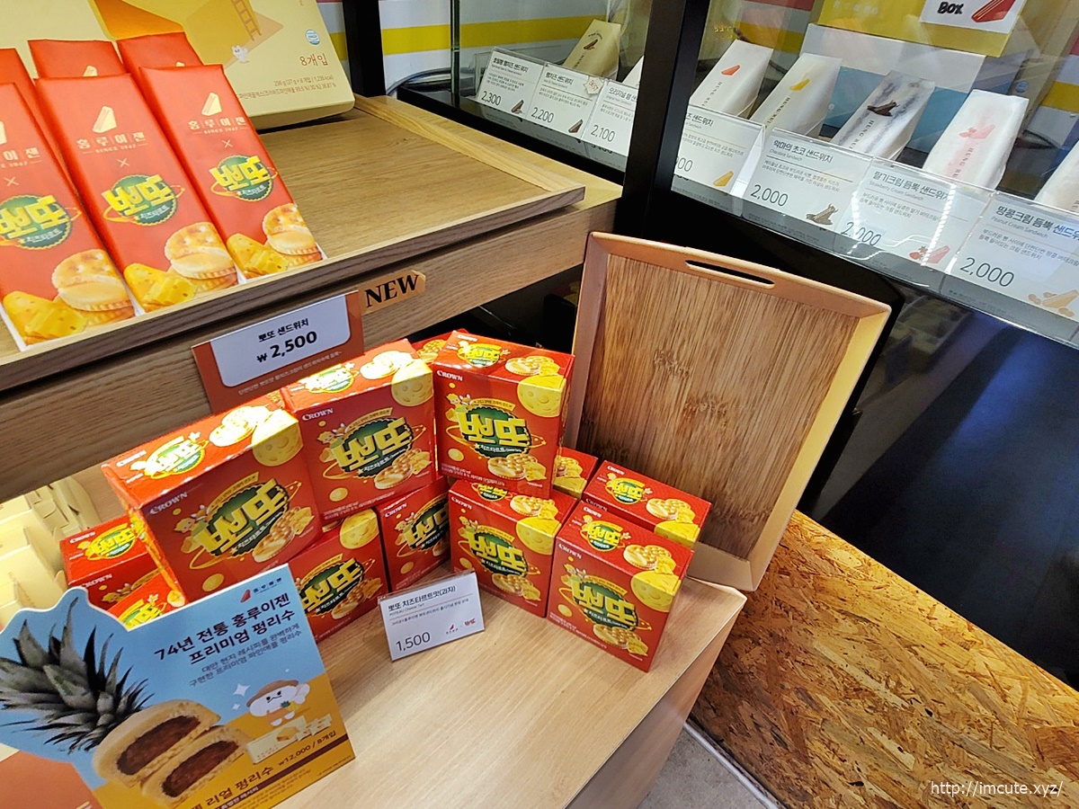 뽀또 샌드위치는 2500원이고요 크라운 제과의 뽀또와 콜라보를 한 맛인 거 같습니다.