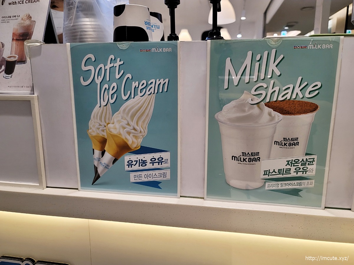 파스퇴르 밀크바의 아이스크림 메뉴는 <유기농 우유>로 만들어졌다고 하며,