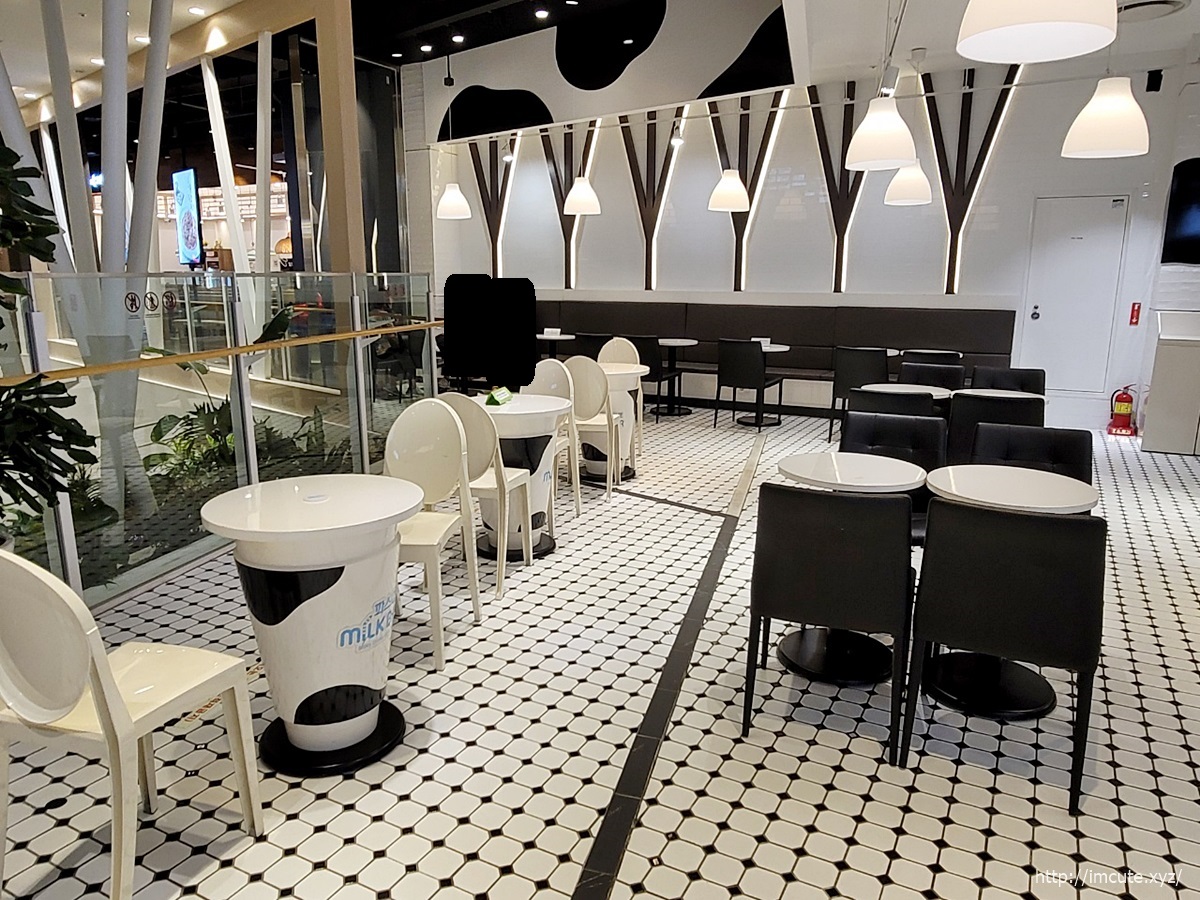 젖소를 상징하는 블랙앤 화이트 색의 인테리어로 이곳저곳 장식이 되어 있는데요 요기 넘 동심을 자극하는 매장 분위기더라고요..! 맘에 들어요.