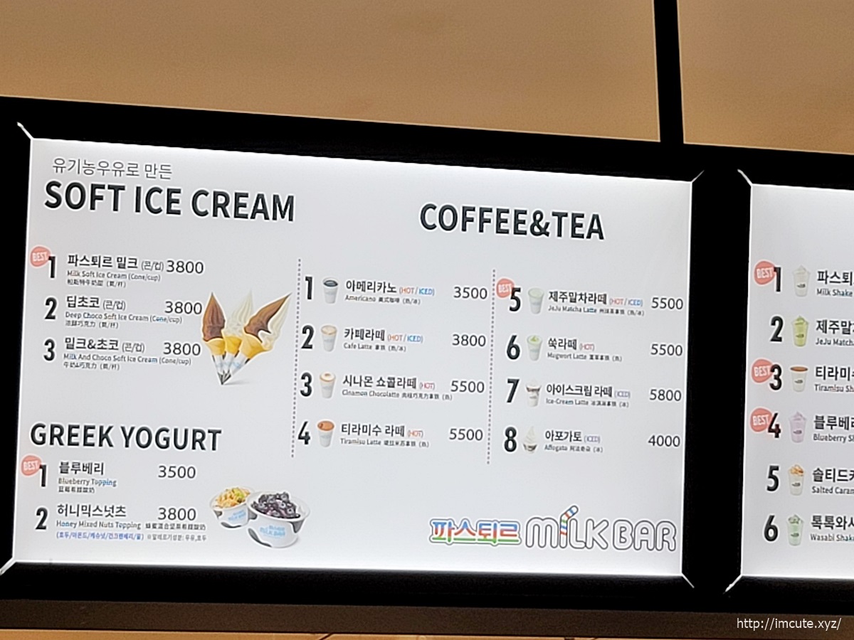 파스퇴르 밀크바의 아이스크림 메뉴는 <유기농 우유>로 만들어졌다고 하며,