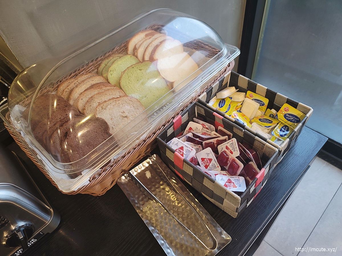 빵은 토스트기가 있었고요 쨈이랑 버터가 있어서 취향껏 발라주면 되지요.
