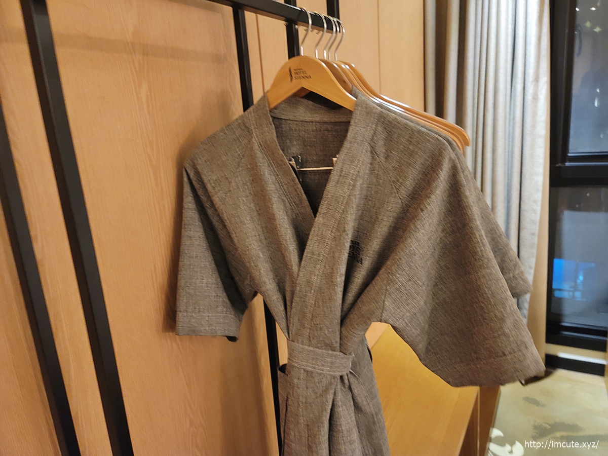 호텔 안에서 입으면 좋은 가운입니다. 부들부들 재질도 좋고 반팔입니다.
