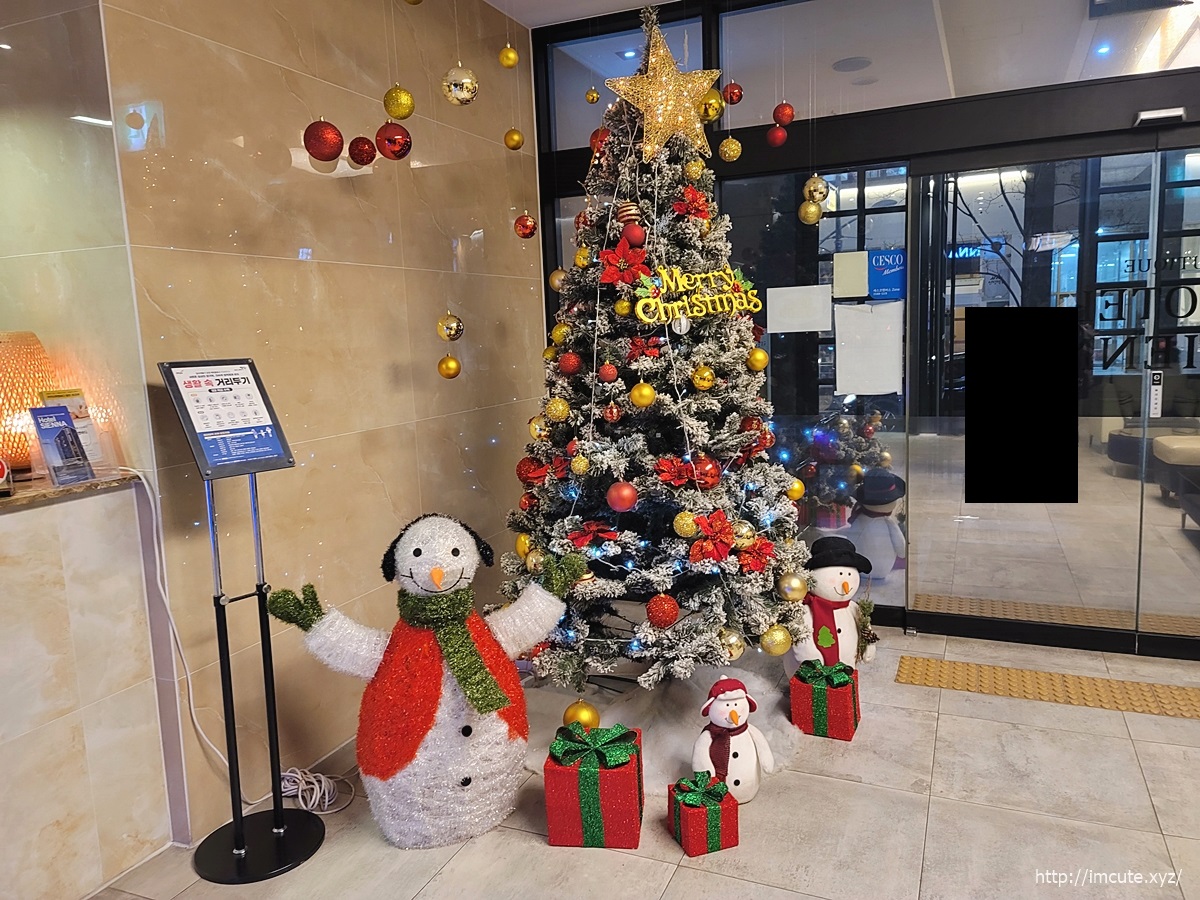 1층에 눈사람 장식이 있어요. 크리스마스를 맞이하여 파주 여행하실 투숙객 분들께선 행복한 마음까지 느끼실 수 있을 듯합니다.