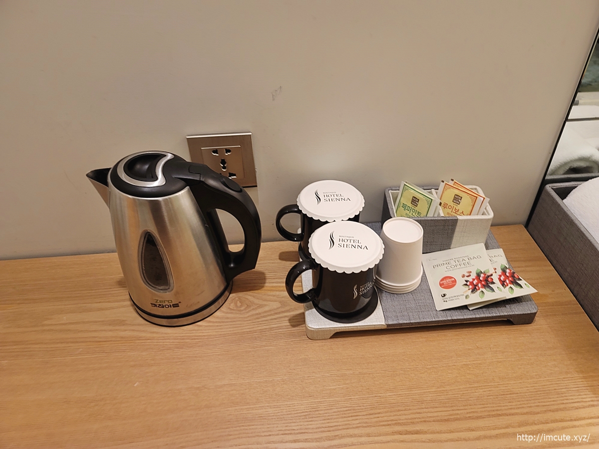 기본적으로 구비돼 있는 차인데요 항상 호텔 갈 때마다 요런 거 주로 살피는데 역시 아메리카노 맛있는 것으로 준비돼 있고요.
