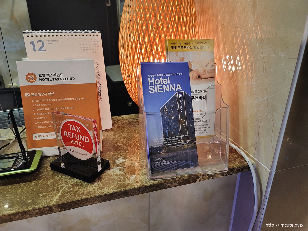 호텔 택스리펀드 등의 안내가 붙어있네요.