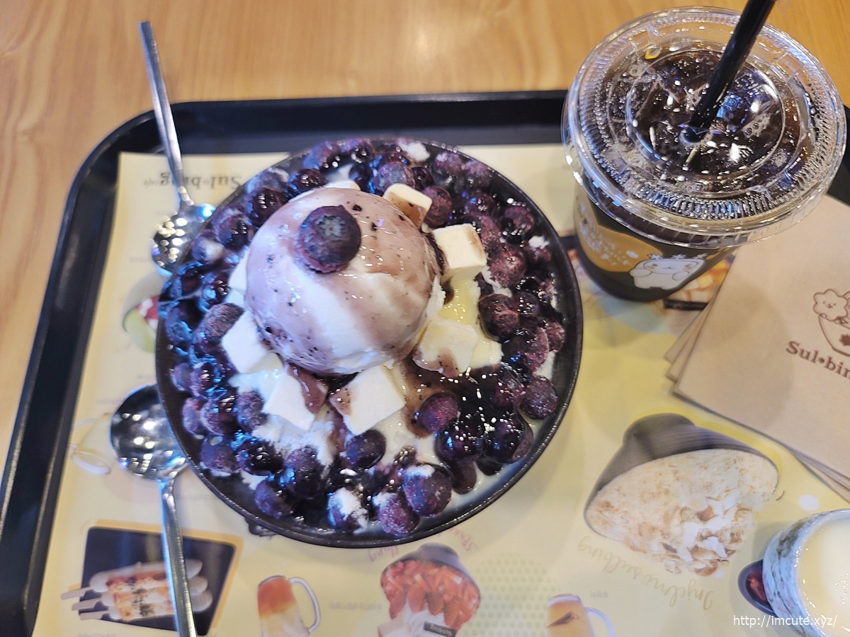 저는 블루베리 치즈빙수와 함께 아이스 아메리카노 먹어주었답니다