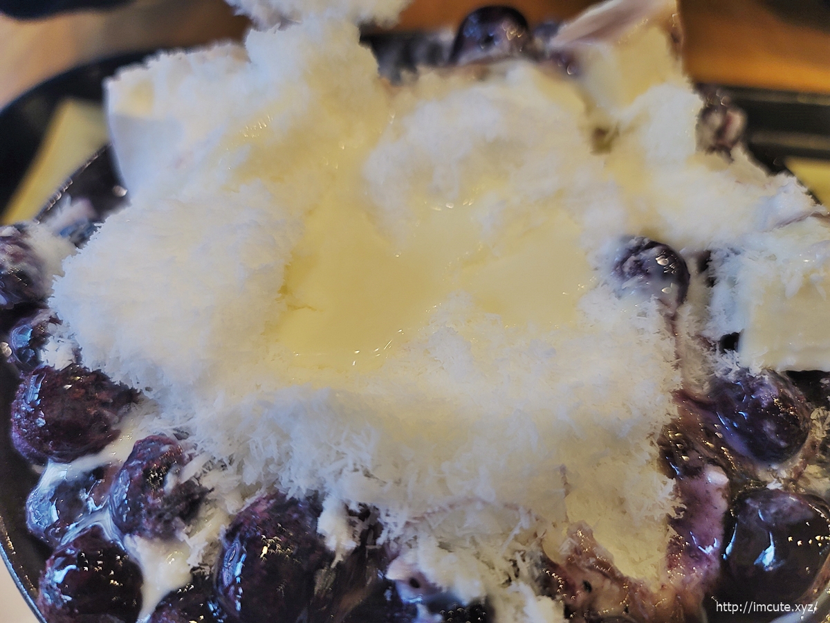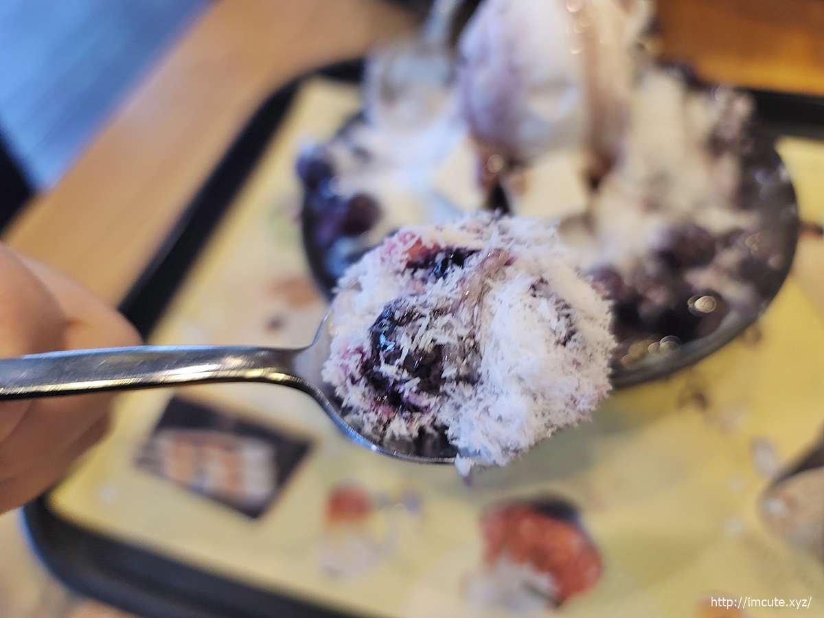 우유 얼음과 냉동 블루베리 그리고 연유가 합쳐져 엄청난 시너지 효과를 뿜뿜 하고 있어요..