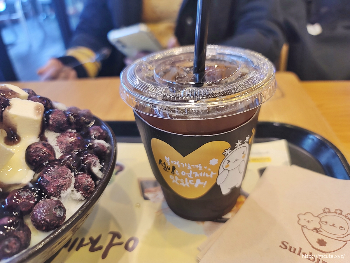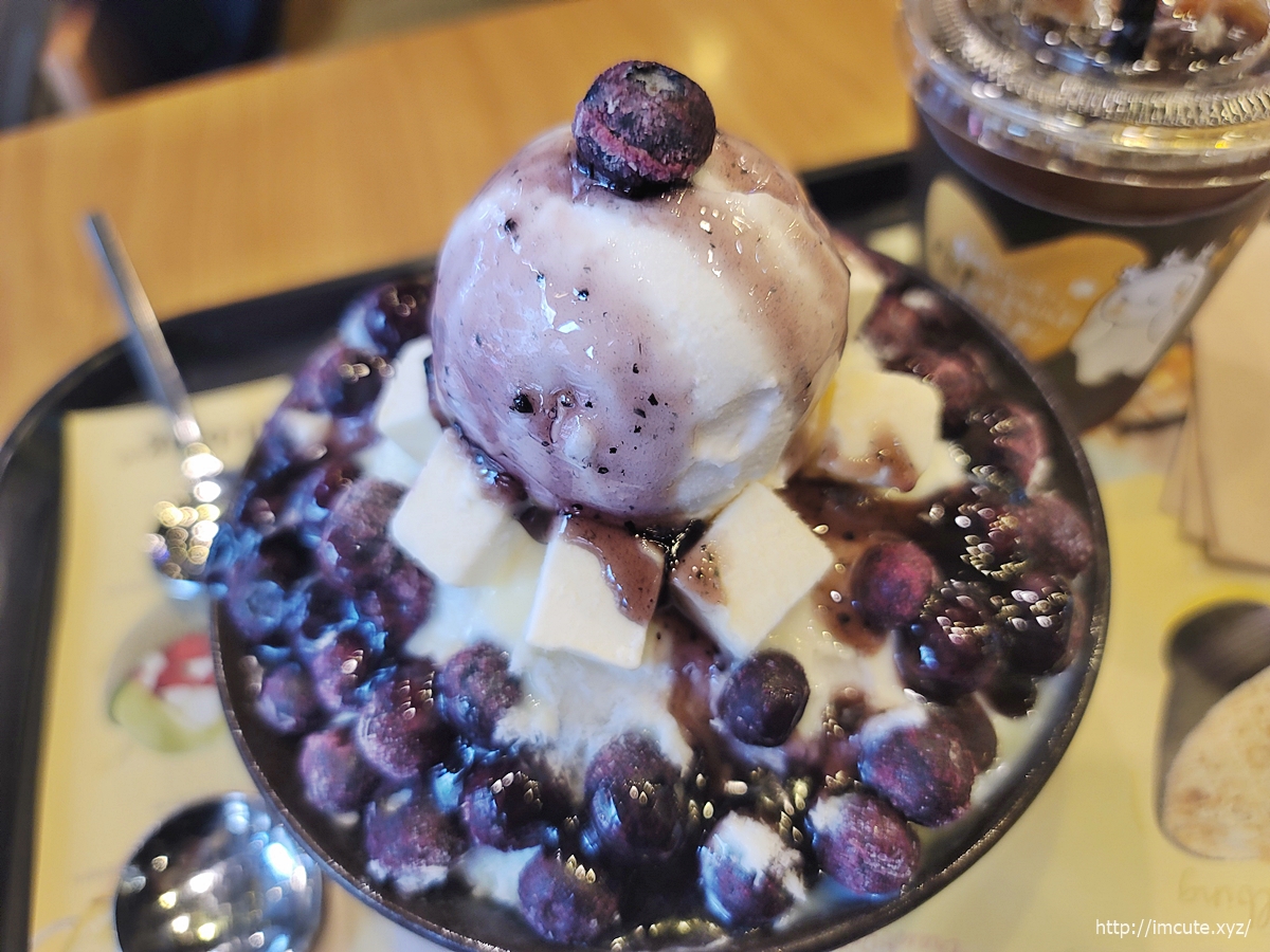 저는 블루베리 치즈빙수와 함께 아이스 아메리카노 먹어주었답니다
