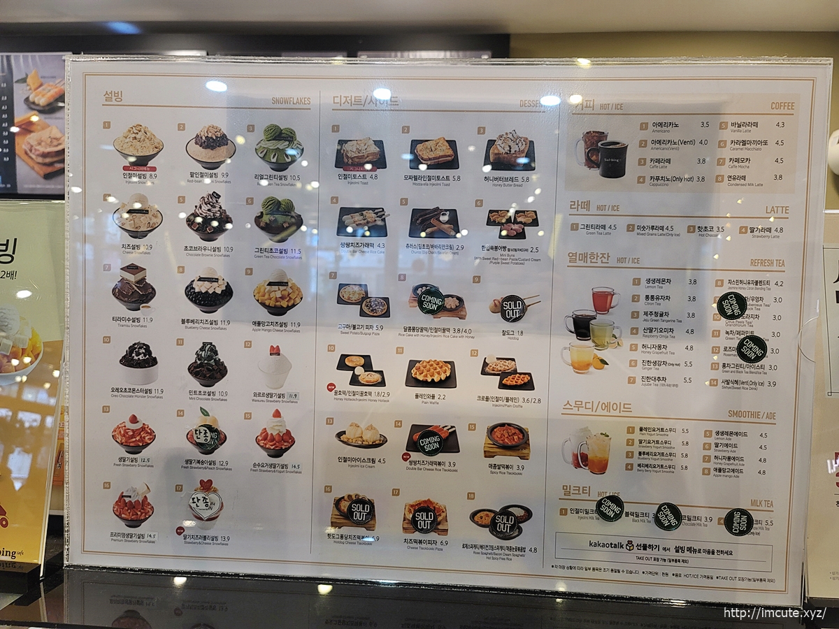 체인점이므로 가서 먹기 좋고 또 빙수 뿐만이 아니라 카페 메뉴도 있기에 자주 가서 즐기기에 좋아요.