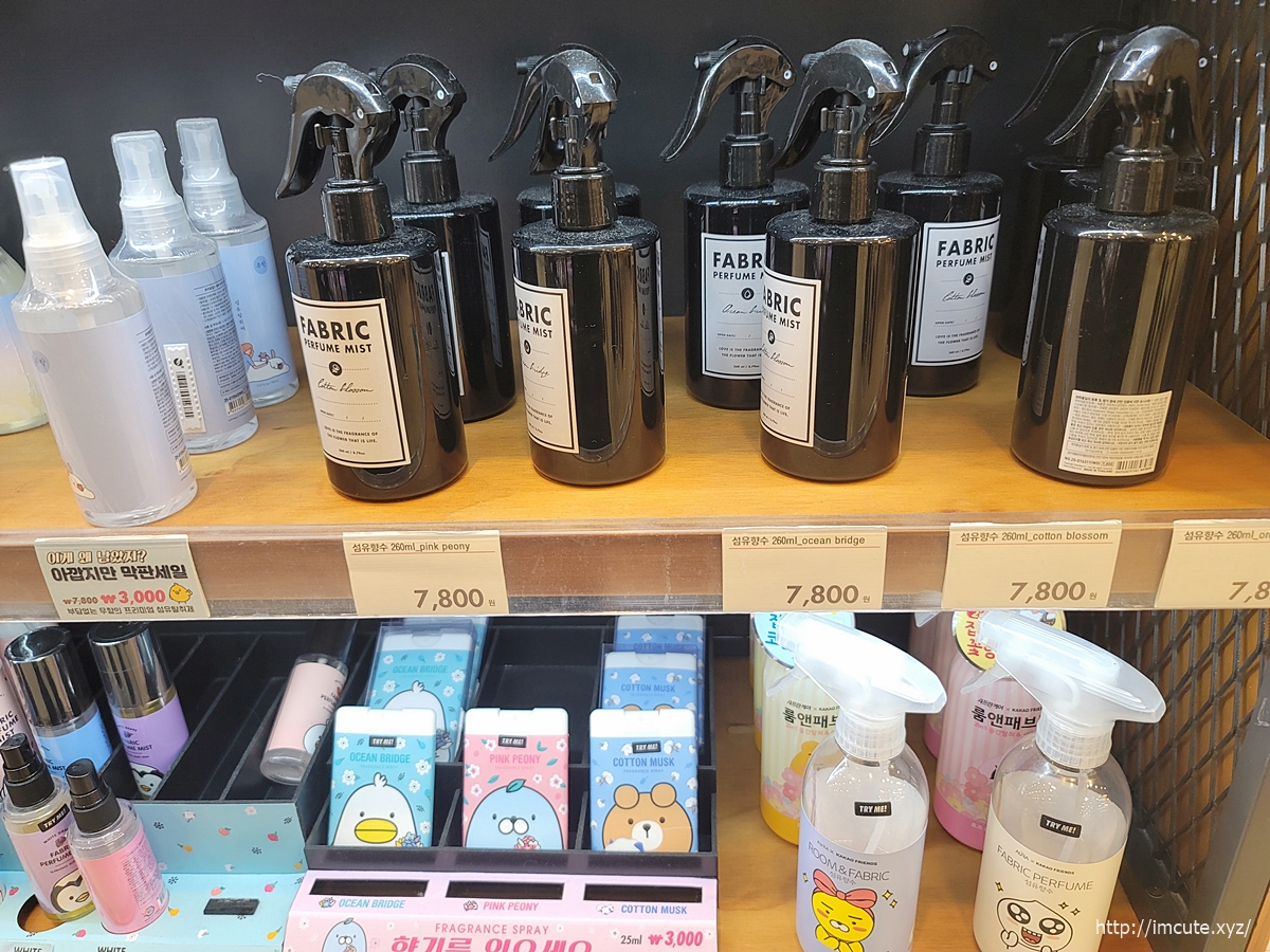 아트박스는 섬유향수와 휴대용 섬유향수도 있었는데요 역시 아트박스 특유의 캐릭터가 눈을 즐겁게 했으며 가격도 2900원부터 다양하더라고요.