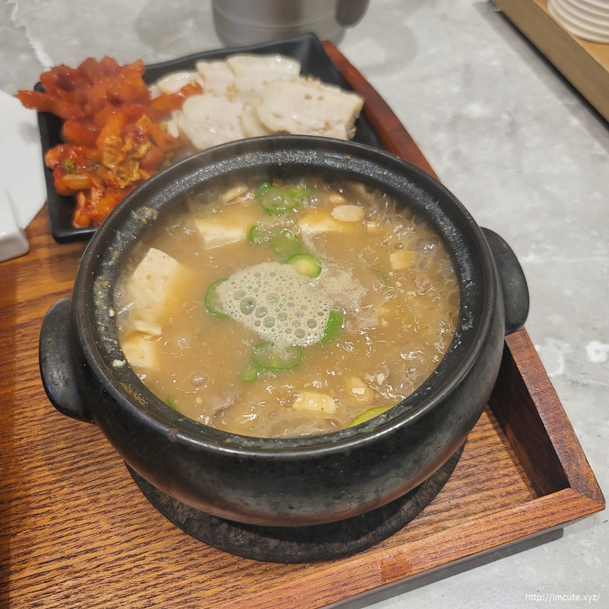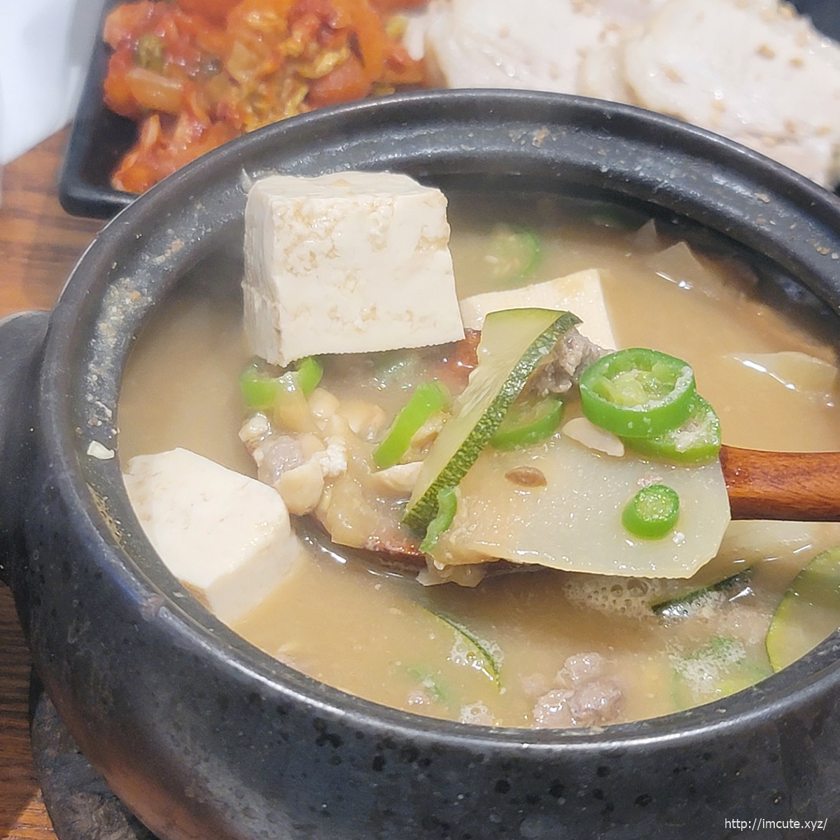 메인인 청국장이 간이 세지 않고 또 고기가 들어있어서 국물맛이 아주 깊더라고요