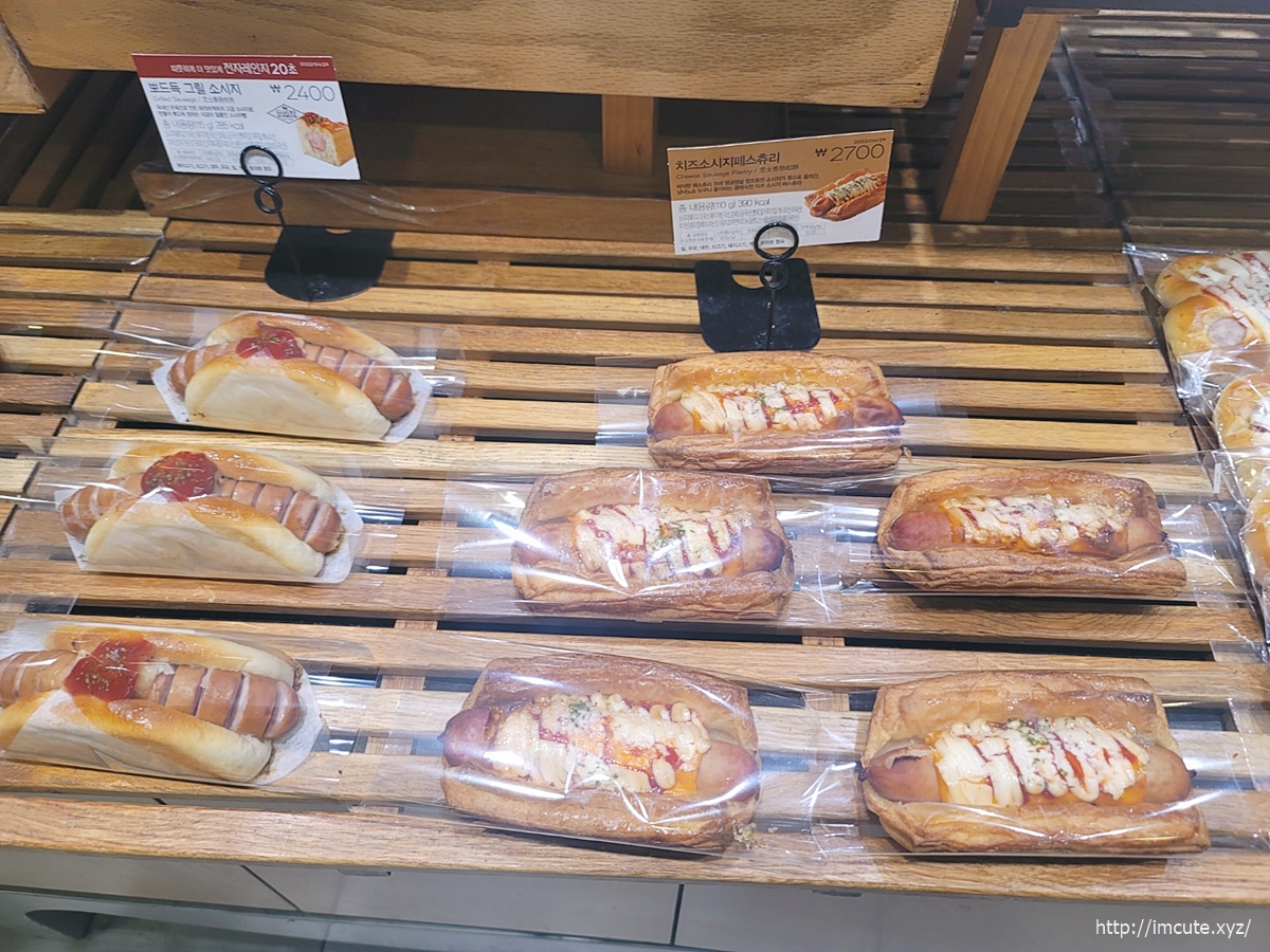 뽀드득 그릴 소세지는 2400원, 치즈 소세지 페스추리는 2700원인데요 아무래도 소시지가 고급져서 입에 톡-톡-터지는 맛이 일품인거 같아요.