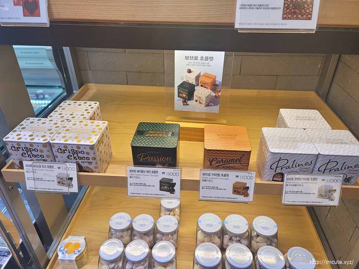 그 외의 파리바게트 초콜릿 선물세트들~ 보기만 해도 달큰달큰해요. 보브로크리스포 초코 초콜릿은 1만 1천원, 보브로 헤이즐넛 패션 초콜릿과 보브로 카라멜 초콜릿, 보보로 코코넛 카라멜 초콜릿이 1만 1천원이었습니다. 종류가 다양해서 초콜렛도 여러 종류가 있다는 것을 새삼 깨닫게 해주는 파리바게트 달달구리들~~