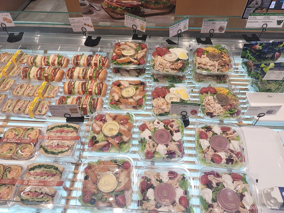 가든샐러드, 그린샐러드라든가 에그샐러드도 있어요. 참치샐러드도 따로 포장된 것으로 팔고 있고요.