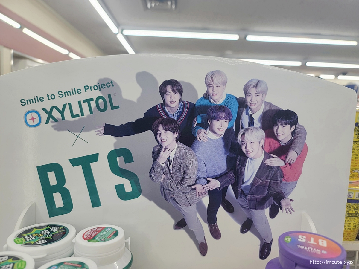 방탄소년단 멤버들과 자일리톨 껌이 만나 이렇게 XYLITOL X BTS 콜라보의 근사한 포스터도 붙어있더라고요