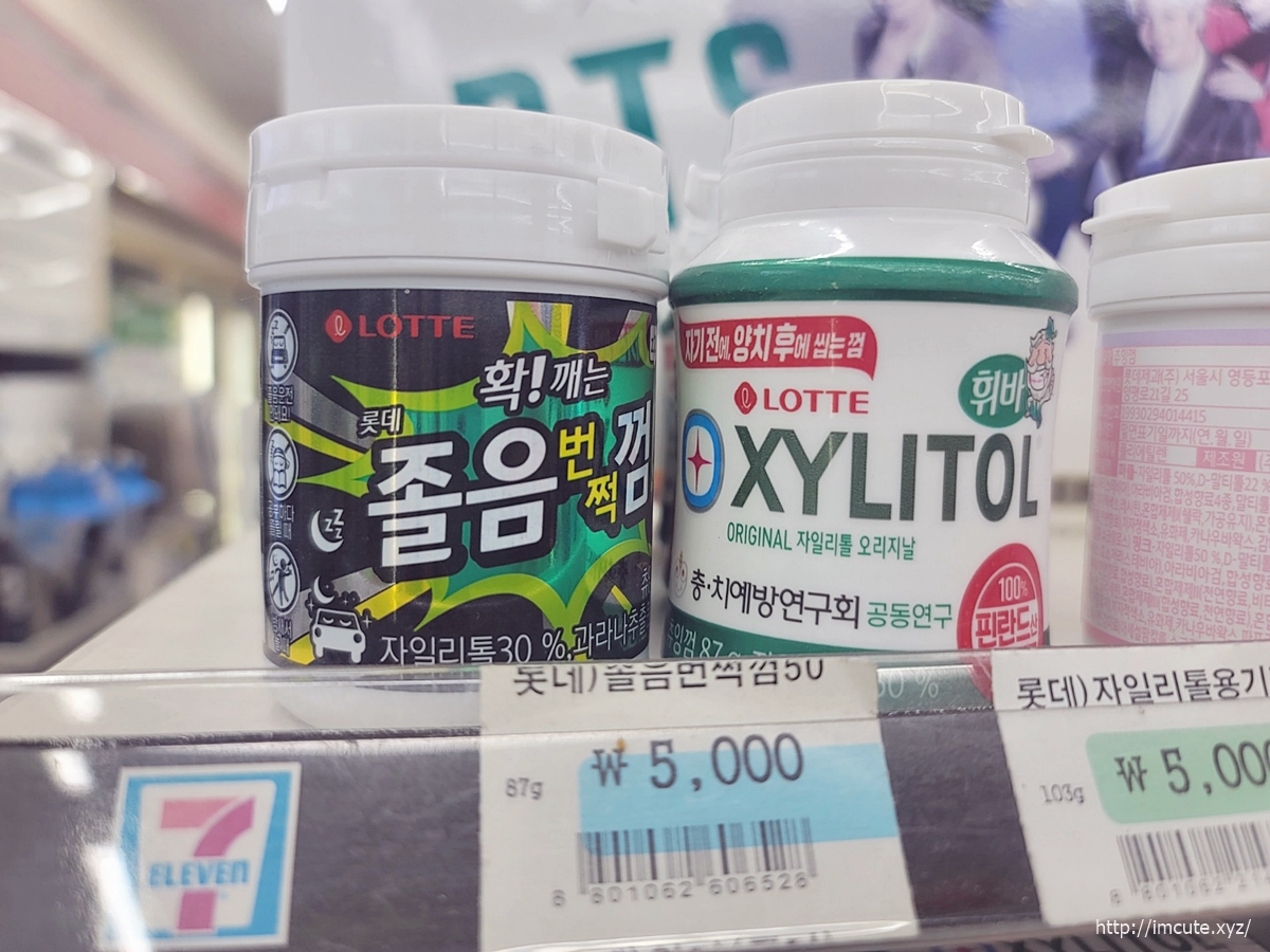 다른 자일리톨 껌도 맛있어보여서 찍어봤어요~~~~ 졸음번쩍껌은 자일리톨은 아닌데 자일리톨 30%라고 써있는거 보니 뭔가 먹으면 입이 화할거 같죠, 자일리톨 작은껌도 있어요^^ 편의점 들르셔서 한번 둘러보세요~