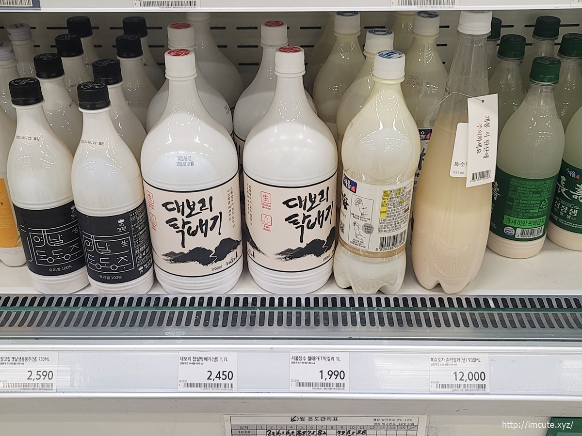 2천 450원이고요 그 오른쪽에 서울장수 월매 PET막걸리 1리터가 1990원ㅇ비니다.