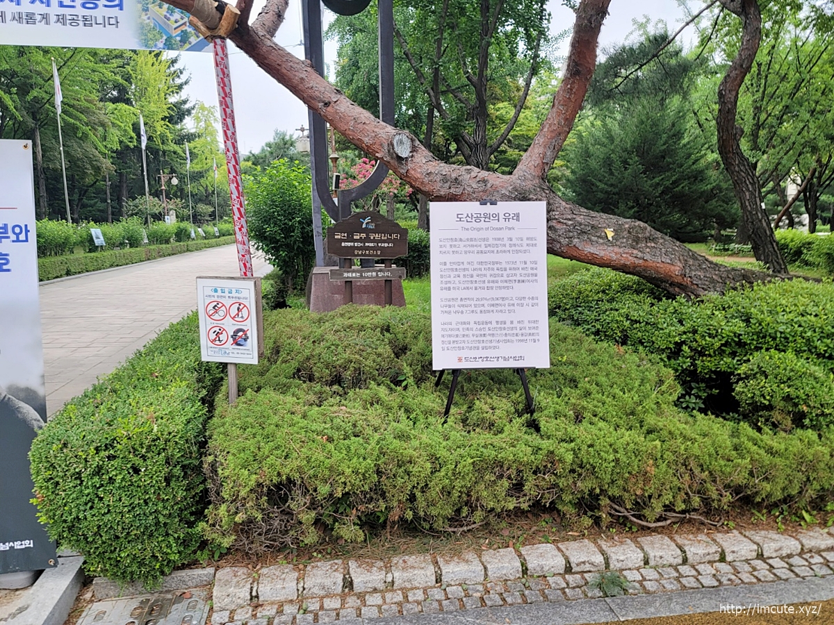 도산공원의 유래가 붙어 있는 팻말입니다.