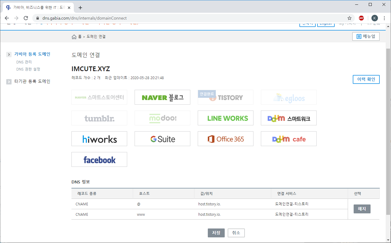 티스토리 블로거라면 도메인 연결이 되는 가비아에서 하는 편이 좋을 것 같다. 네이버 블로그나 티스토리 둘 다 도메인 연결이 바로 되어서 손쉽게 주소 설정을 할 수 있으니 말이다. DNS 세팅하는 것이 여간 골치아픈 일이 아닌데 완전 꿀이다. 현재 가비아 사이트에서는 g클라우드, AWS, Microsoft365 최대 70%까지 할인 이벤트를 진행하고 있다.